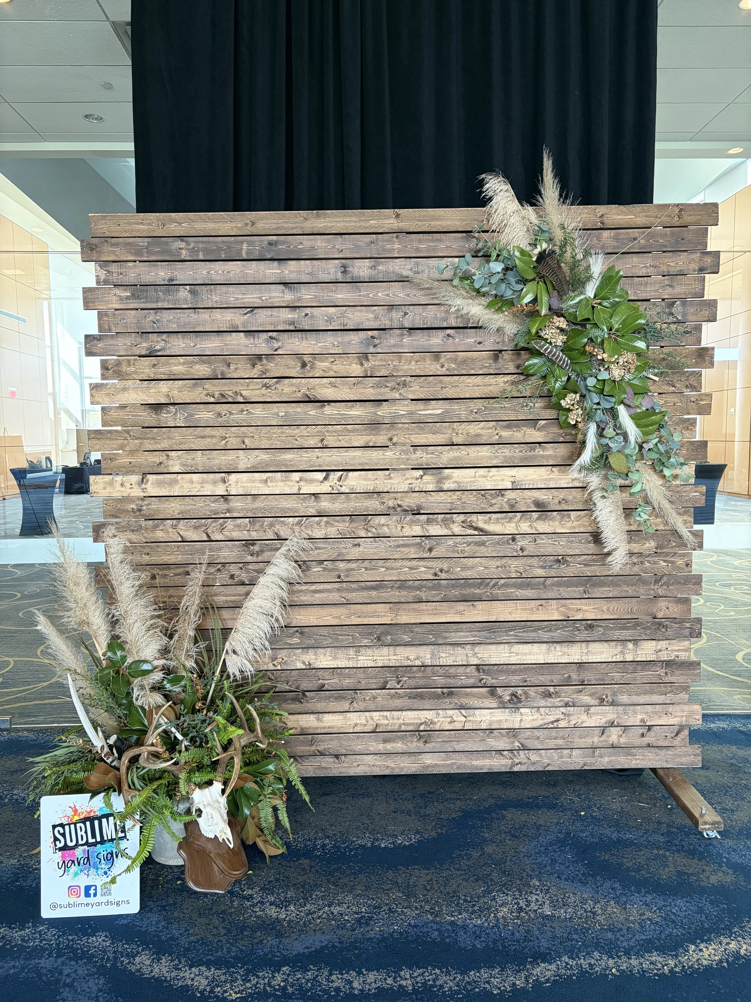 Looking for something truly one-of-a-kind for your next event? Our signature 8-foot wooden wall display makes a dramatic statement and serves as the perfect backdrop for photos and parties. Whether you’re celebrating at home, a school, or a business, our wooden backdrop makes every occasion unforgettable.